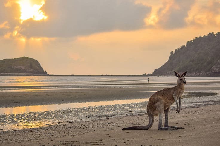It’s the biggest drive on our 13-day itinerary, but you’ll find it so worthwhile when you’re watching the sunset with the ‘roos. Today’s mish is to the bucket-list–fulfilling Cape Hillsborough National Park.